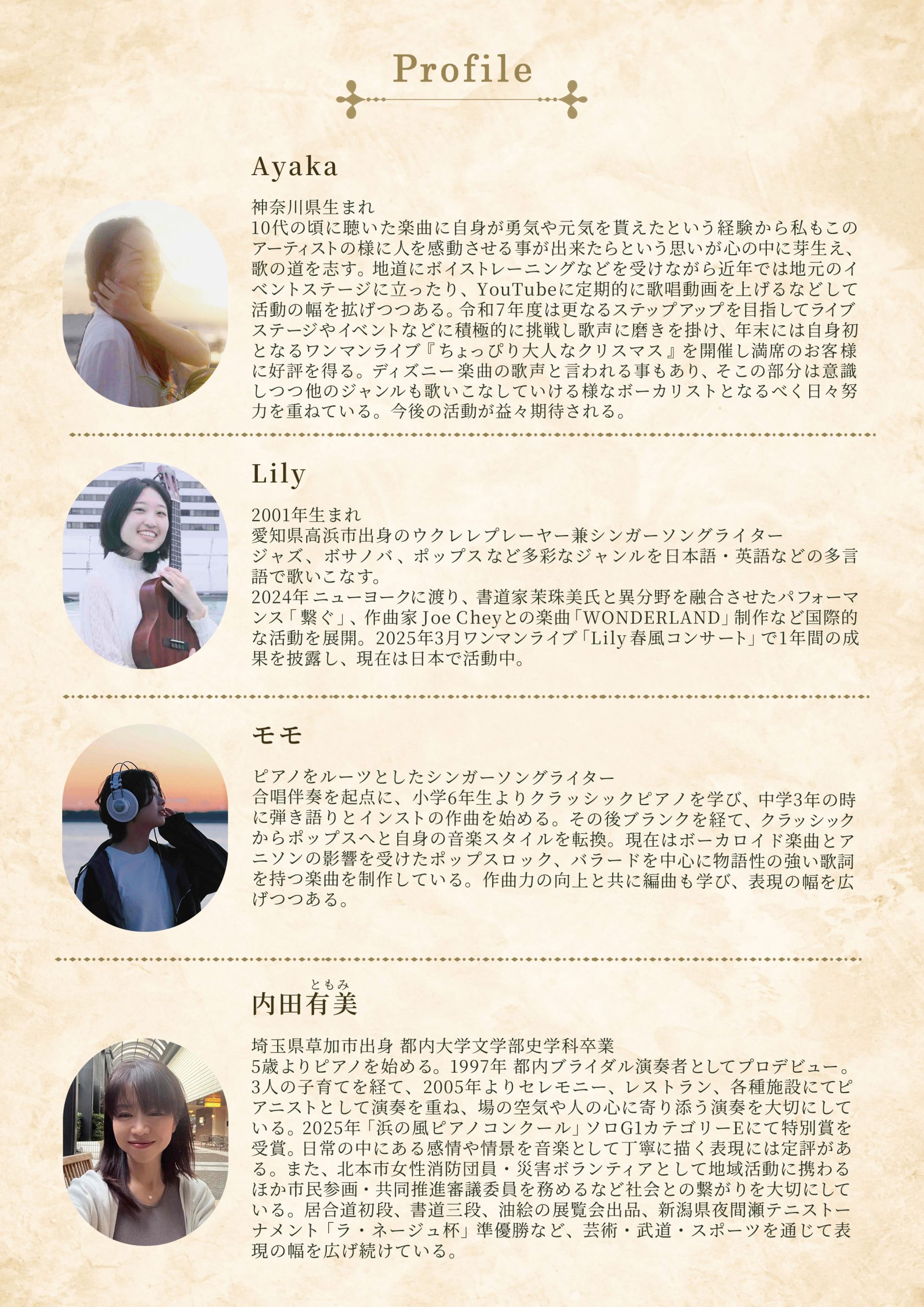 ボーカリストの素敵な歌声と楽器奏者による